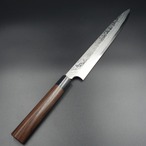 仙助 柳刃包丁 ダマスカス 安来鋼青紙2号 300mm 紫檀シノギ柄