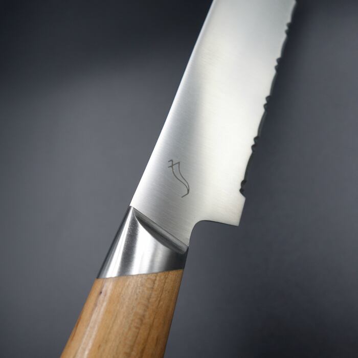 kasaneパン切り包丁は独自の大小のギザ刃を交互に組み合わせることで硬いパンから柔らかいパン、サンドウィッチまで、刃元から先端まで切る位置を気にすることなく切りやすいところで美しく切ることができます。