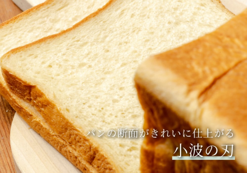 断面をキレイに仕上げるための小さめの波刃、ハードなパンにくい込む大きめの波刃、パンの下フチまでキレイに切れるストレート刃の3種類の形状の刃で色々な硬さのパンがキレイに切れます。刃が緩やかなカーブを描いているのも切りやすさのポイントです。