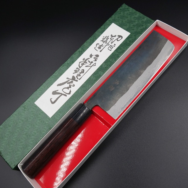 仙助 菜切 包丁 165mm 安来鋼 青紙2号 墨流し 紫檀シノギ柄