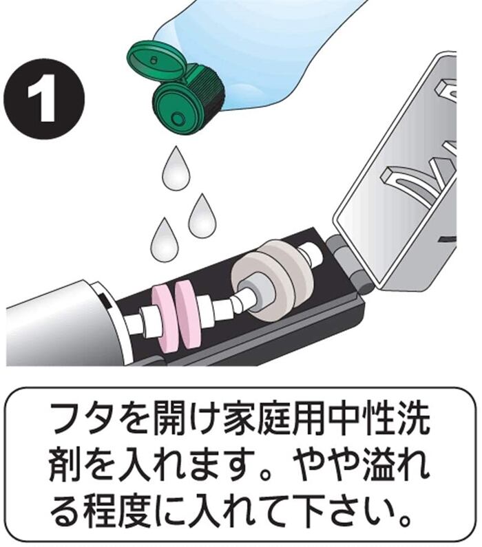 ・家庭用中性洗剤を使用して砥ぐので、摩耗熱と内部のサビを抑えることができます。