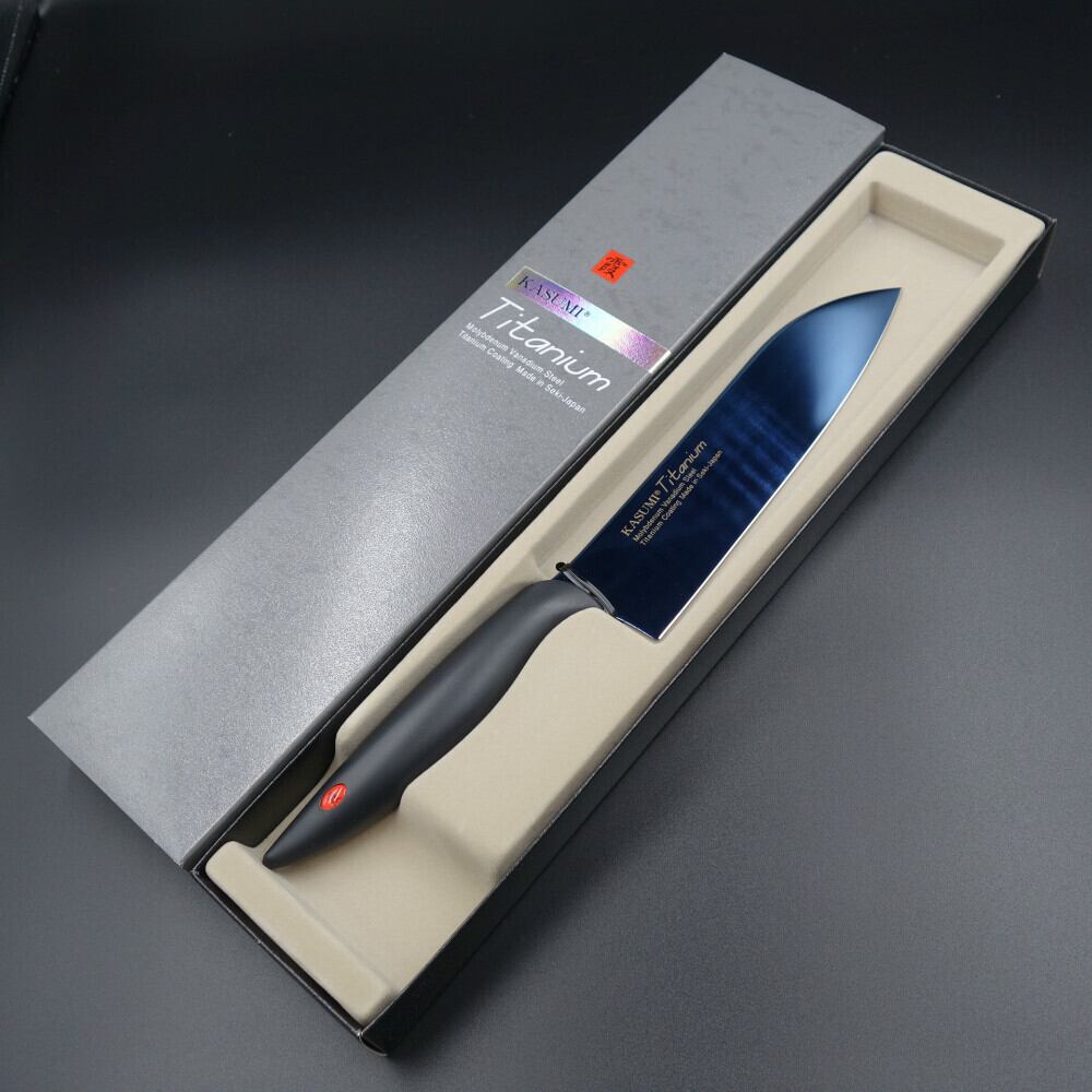 スミカマ 霞 KASUMI 三徳包丁 18cm チタンコーティングブルー と ダイヤモンドシャープナー の2点セットです。