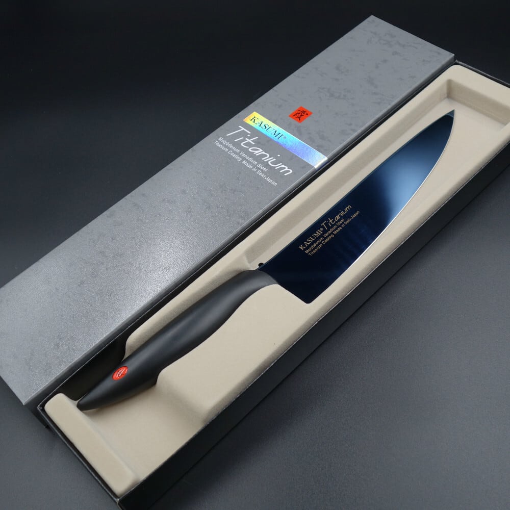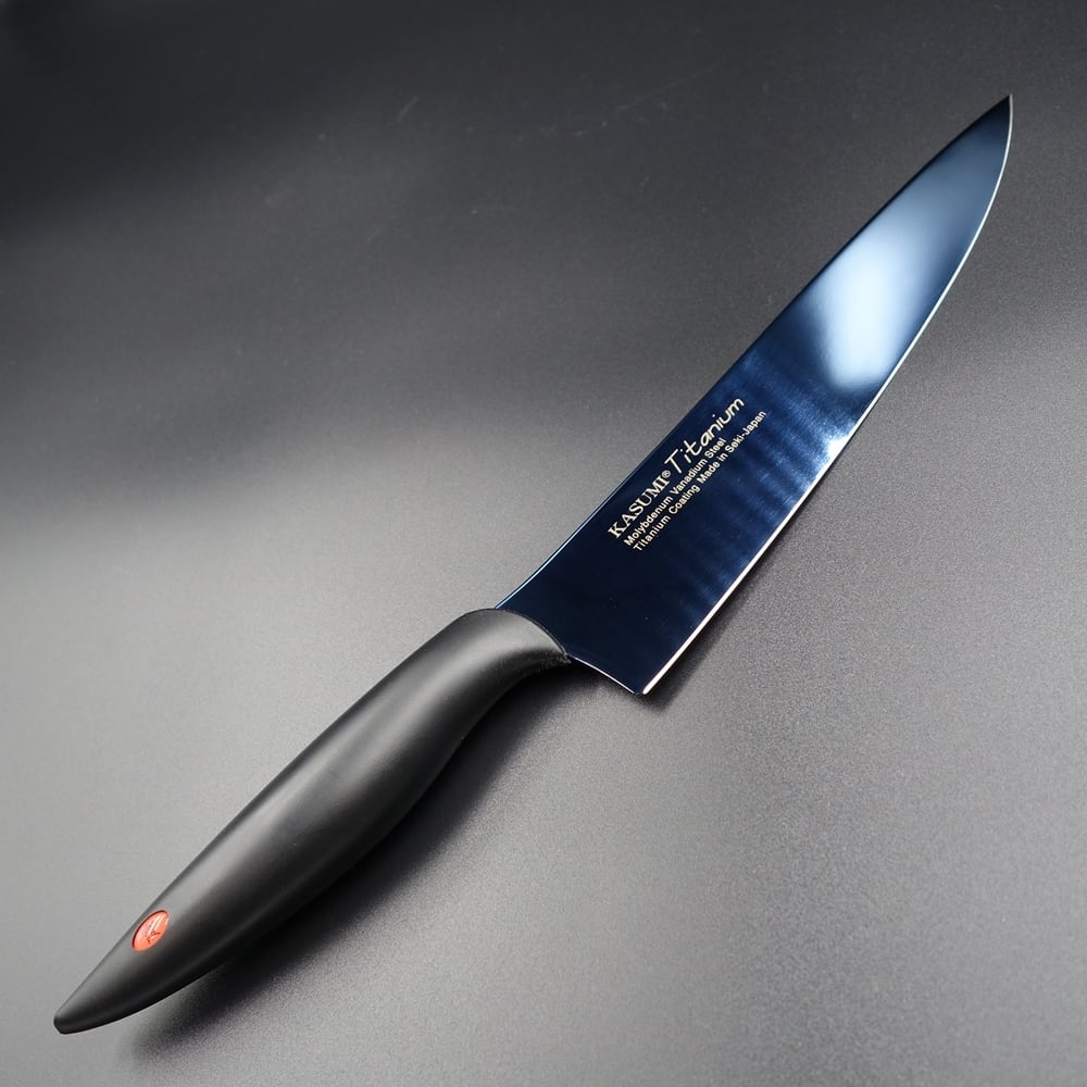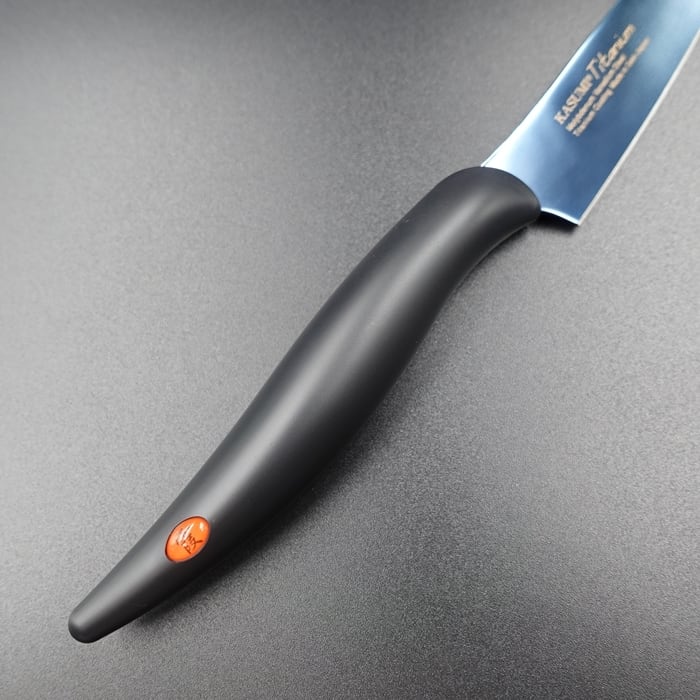 耐摩耗性・粘りに優れたモリブデンバナジウム鋼にチタンコーティングを施し、関の熟練職人が一丁ずつ丹念に仕上げて、抜群の切れ味と機能性を実現しました。チタンコーティングは金属臭が少なく臭いうつりしにくく、キズの防止に効果的な摩耗性に優れています。