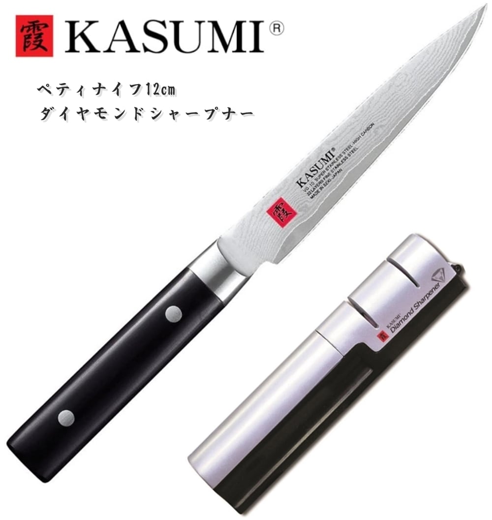 霞 KASUMI 包丁セット ダマスカス ペティナイフ 12cm ダイヤモンドシャープナー セット セット買い スミカマ SUMIKAMA