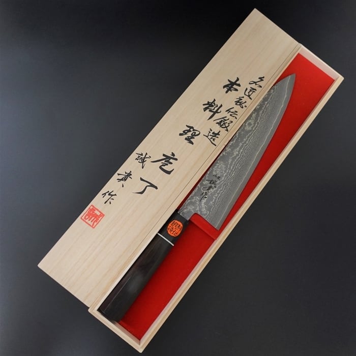 誠貴作 牛刀 包丁 羽々斬 スーパーゴールドII ダマスカス 240mm 水牛八角 黒檀柄