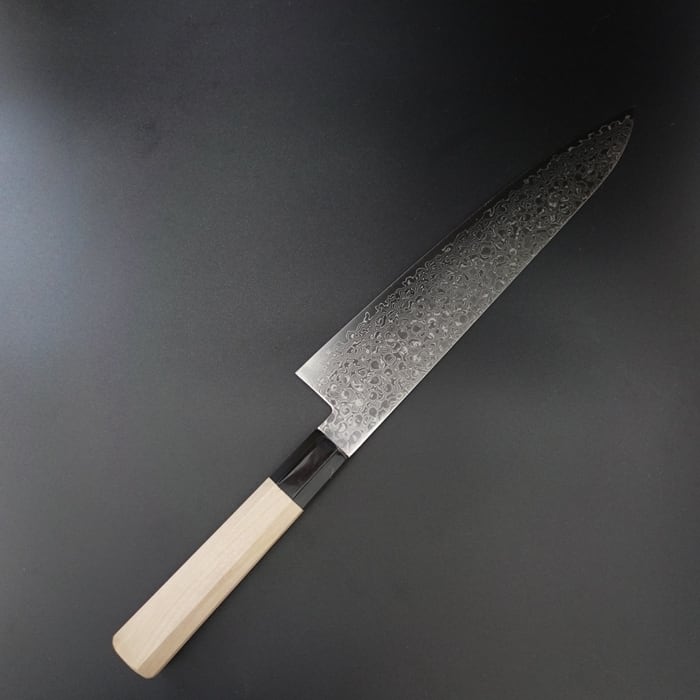 三寿ゞ作 包丁 牛刀 ダマスカス 10A鋼 和牛刀 240mm 水牛 八角柄 三木刃物