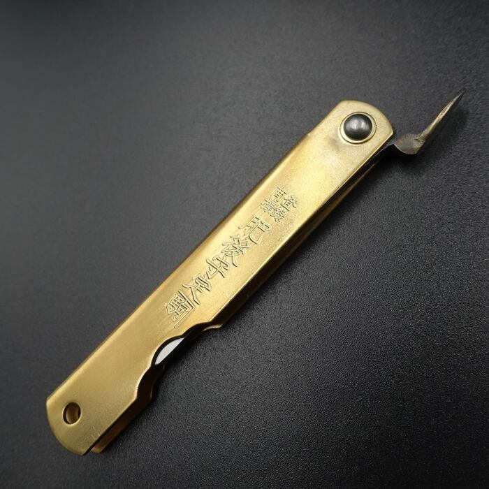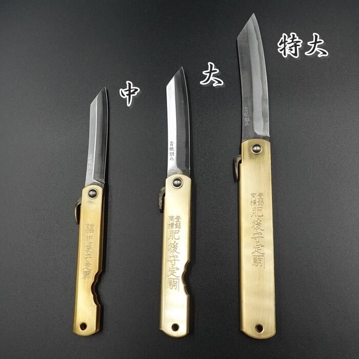肥後守は、明治27年創業の永尾駒製作所の製造販売する、ロック機構を持たない国産ナイフです。肥後と言っても、熊本県(肥後国)で生産されているわけではなく、兵庫県三木で生産されています。日本では珍しい折りたたみ式のナイフは、替刃式のカッターナイフのなかった時代、日本に広く普及していました。材料は安来鋼青紙などで安く切れ味抜群で携帯にも便利な手造り鍛造です。