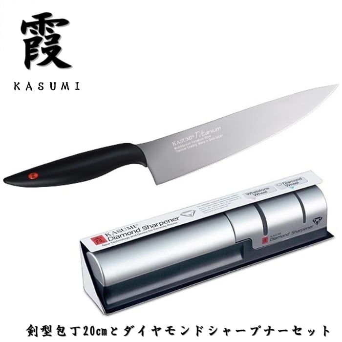 霞 包丁セット 剣型包丁 チタンコーティンググレー 20cm ダイヤモンドシャープナー セット セット買い KASUMI スミカマ SUMIKAMA