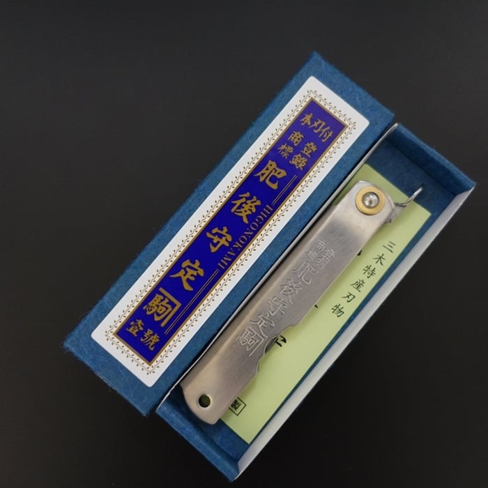 肥後守は、明治27年創業の永尾駒製作所の製造販売する、ロック機構を持たない国産ナイフです。肥後と言っても、熊本県(肥後国)で生産されているわけではなく、兵庫県三木で生産されています。日本では珍しい折りたたみ式のナイフは、替刃式のカッターナイフのなかった時代、日本に広く普及していました。材料は安来鋼青紙などで安く切れ味抜群で携帯にも便利な手造り鍛造です。